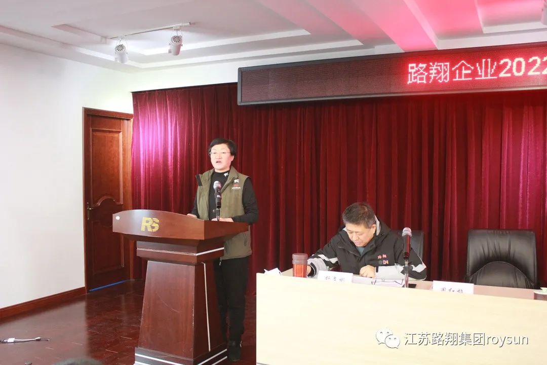 董事长兼总经理、党支部书记周红梅女士作《稳字当头 稳中求进 加快构建新发展格局》的工作报告,全面回顾2021年的工作,突出工作的亮点、梳理存在的痛点。她强调:2022年公司将打破视野局限和思维定势,主动把发展放到更大格局、更长周期中审视定位,与强的比、同高的赛、向高的攀,切实找准找实找全自身目标和定位。希望所有的路翔伙伴们,弘扬新时代“治沙精神”,铭记“天晴时修屋顶”,树立风险意识和忧患意识,精准施策控风险、多元发展保稳定、优化结构促发展,不断提升路翔品牌度美誉度,开创路翔发展新局面。